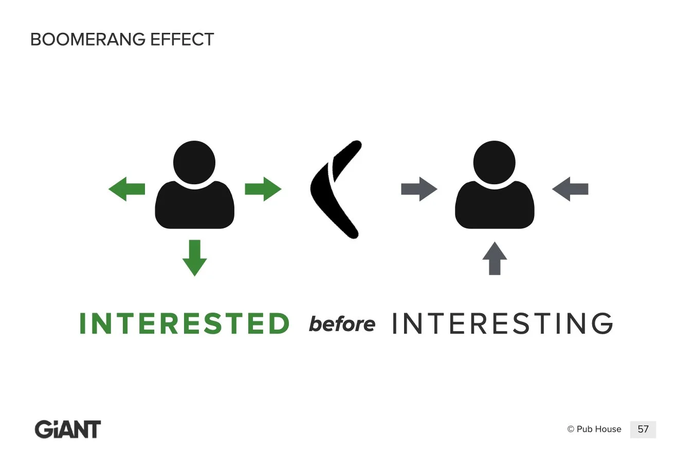 The Boomerang Effect is the tendency to bring the conversation back to yourself. You throw it out, listen for a moment, then bring it right back to you.
